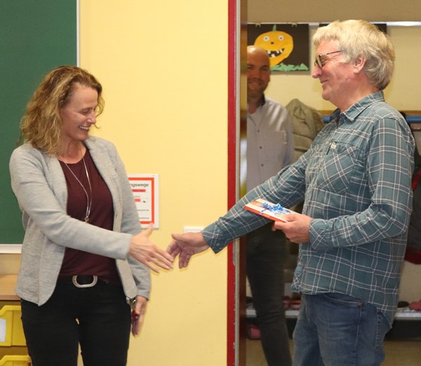 Mitorganisatorin Sandra Lehmkuhl bedankte sich bei Wilhelm Rinschen mit einem kleinen Geschenk.