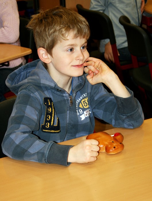 Als Überraschung gab es für jeden Schüler noch einen Stutenkerl mit Kirschlolli. Mmmh, der duftete richtig lecker und wir bedankten uns dafür. Leander aus der Klasse 1b sagte noch zum Abschied: "Ich möchte, dass du nächstes Jahr wiederkommst!" Das müßte doch eigentlich bei so lieben Kindern klappen, oder ?????? Danke an dieser Stelle auch noch mal dem Förderverein und dem Team Werning für den tollen Einsatz. Die vielen lieben Engel in der Backstube haben kräftig mitgeholfen und den Kindern viel Freude bereitet ... .... Danke auch an den Nikolaus (Bis vielleicht und hoffentlich zum nächsten Jahr :-))