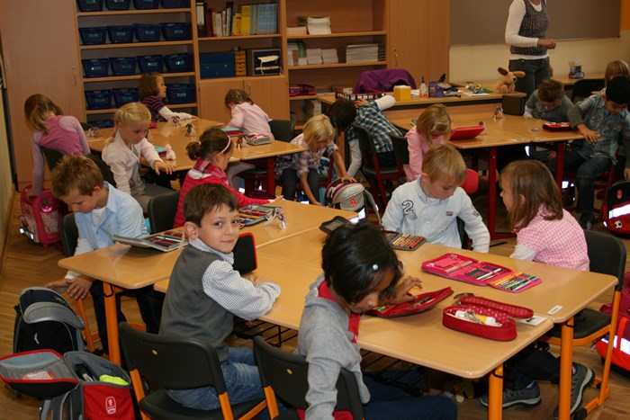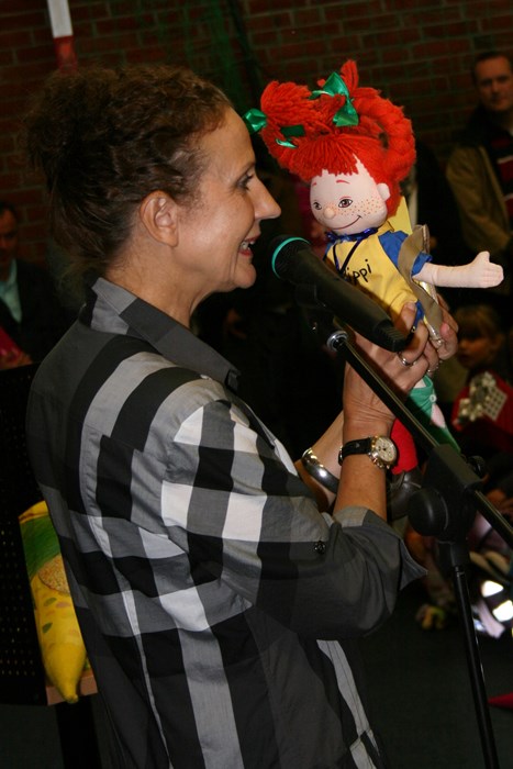 Unsere  Schulleiterin Frau Fenk-Stein begrüßte uns mit "Hallo erstmal ... " und sie hatte auch noch eine uns bekannte Freundin mitgebracht. Diesem Mädchen war auch etwas mulmig zumute, genauso wie uns - aber wir kannten sie alle. Ihr Name: Pippi Langstrumpf. Sie hatte schon einige Schulutensilien dabei - Radiergummi, Anspitzer, unangespitzte Buntstifte und sogar einen Taschenrechner (aber den brauchen wir nicht - wir sind alle gute Kopfrechner). Durch ihre aufmunternden Worte konnte jetzt gar nichts mehr schiefgehen.