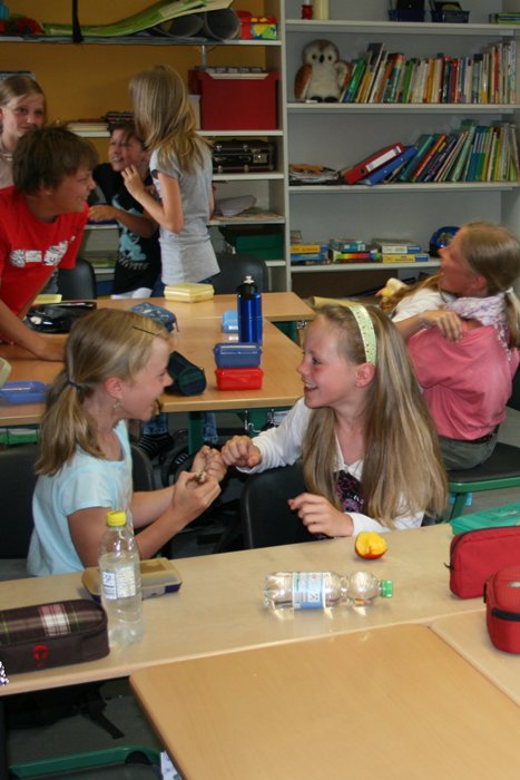 Was war das für eine Stimmung, als die Gewinner des Klassenpreises bekanntgegeben wurden. Uns hielt es einfach nicht mehr auf den Plätzen. Mit einer Stimme Vorsprung haben wir gewonnen. Am Mittwochmorgen verkündete Herr Waltermann per Lautsprecherdurchsage die Gewinner des Trommelzauberrätsels.