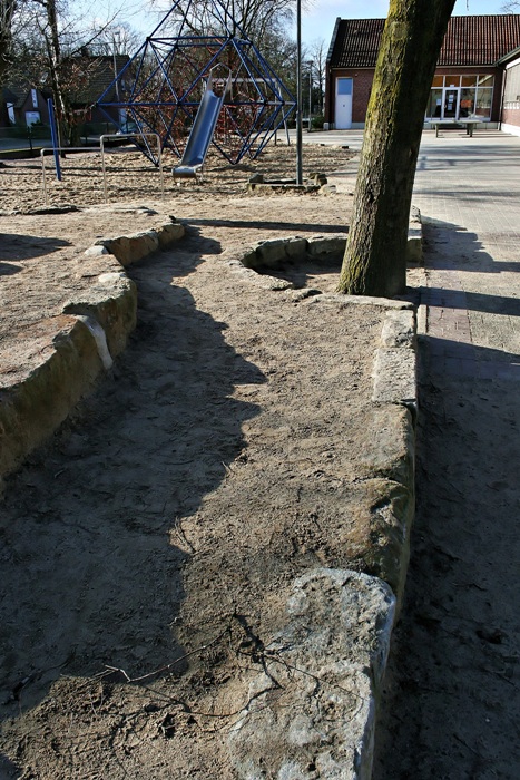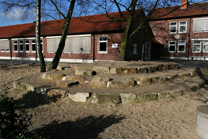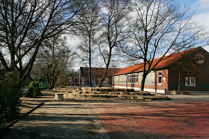 Kurz nach den Sommerferien im Jahre 2012 (am 03.11.) wurde der erste Abschnitt der Schulhofgestaltung erfolgreich abgeschlossen. Dank einer sehr aktiven Elternschaft, dem Kollegium und der Gemeinde Neuenkirchen wurde das Projekt ein voller Erfolg. Allem voran Professor Dr. Martini aus Münster. Er entwickelte ein kindgerechtes Konzept, das Schule, Natur und Gemeinschaft miteinander verbindet.
