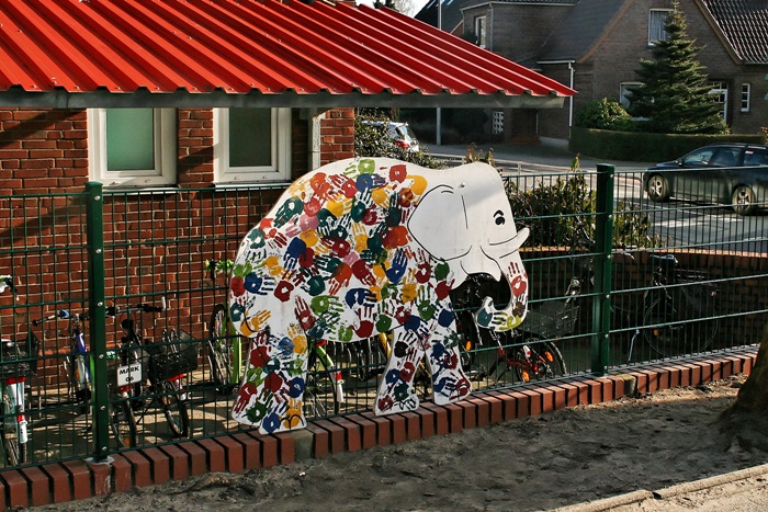 Auch Elmar, das Abschiedsgeschenk der Viertklässler, schmückt den Zaun,