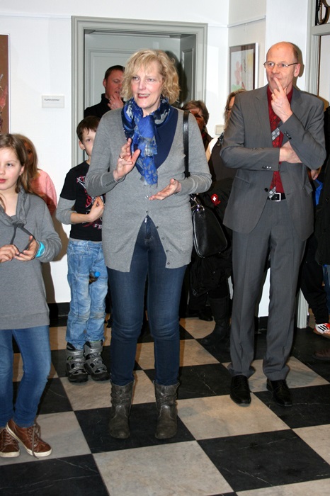 Mit den Worten „Schauen Sie sich um und lassen sie sich inspirieren von Schwarz-Weiß-Zeichnungen, Collagen oder von unserem Gemeinschaftswerk" eröffnete sie gegen 18.15 Uhr die Ausstellung und dicht gedrängt standen die Gäste vor den Kunstwerken und kamen aus dem Stauen nicht mehr heraus.