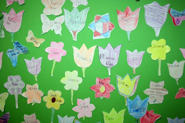 Die Jungen und Mädchen der Klasse 2a hatten einfach keine Lust mehr auf dicke Jacken, Wollmütze und Handschuhe. "Wir holen jetzt den Frühling in unser Klassenzimmer und gemeinsam mit ihrer Klassenlehrerin Lisa Lüke verzierten sie die Fensterbänke mit den ersten Frühlingsblumen. Gleichzeitig machten sie sich so ihre Gedanken zum angesagten Thema. Was heißt eigentlich Frühling? Auf ausgeschnittenen Papierblumen standen Wörter wie z.B. Ostern, Sonnenblume, Knospen, Tulpe.