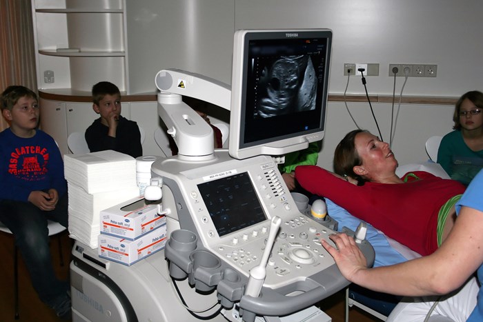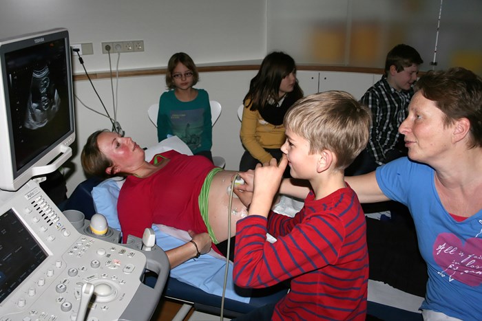 „Dürfen wir auch bei einer echten Geburt zusehen?" Adrian und seine Klassenkameraden sind an diesem Morgen mächtig aufgeregt. „Eine Entbindung zeige ich euch nicht, dafür schauen wir uns aber gleich mit dem Ultraschallgerät das ungeborene Baby unserer Patientin Daniela Reinermann an", erklärt Dr. Fröhlich den Kindern. „Vielleicht findet ihr ja auch sogar das Geschlecht heraus."