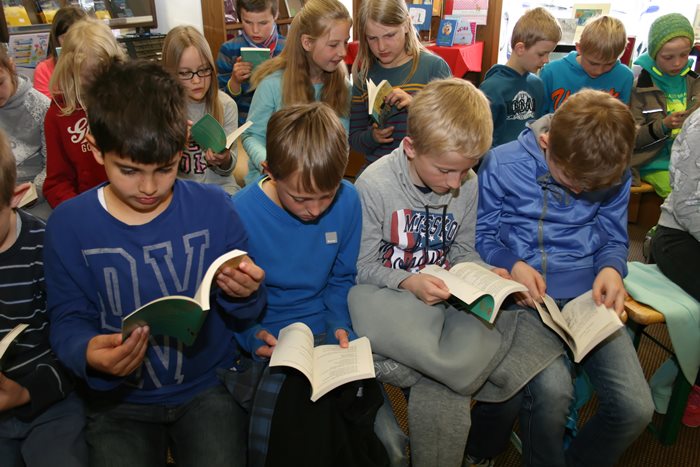 Celina (9), Amelie (10) und Fabian (9) gehen in die vierte Klasse und sind echte Leseratten. In jeder freien Minute tauchen sie ein in die Welt der Abenteuer- Fantasie- und Freundegeschichten und die Pfarrbücherei St. Anna kennen sie in und auswendig. „Ich spare immer mein ganzes Taschengeld für ein neues Buch" lacht Amelie und Fabian liest regelmäßig ein bis zwei dicke Bücher in der Woche.