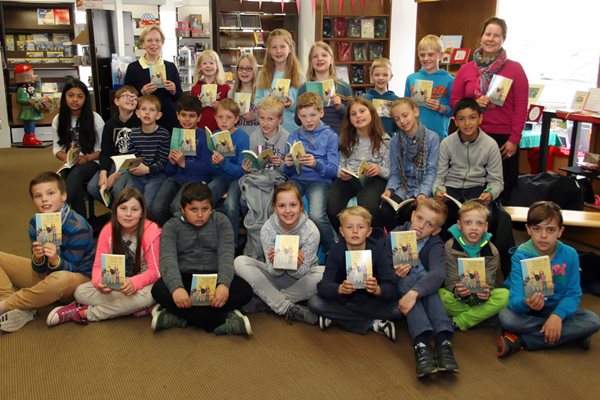 Doch bevor dieses Lesevergnügen an die Schüler ausgehändigt wurde, las Monika Hubert aus dem Buch von Cornelia Funke „Die Gespensterjäger" vor. Aufmerksam hörten wir zu und stellten Vermutungen auf, wie die Geschichte rund um die Gespensterjäger Hedwig Kümmelsaft, und Hugo MUG wohl ausgehen mag. „Das werde ich euch heute natürlich nicht verraten", schmunzelte die Buchhändlerin. „Dazu müsst ihr das Buch dann schon selber lesen."