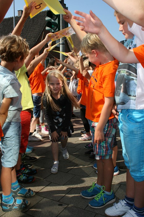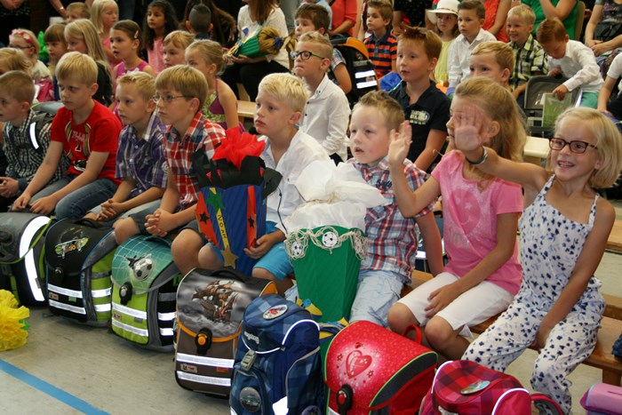 Um 9.30 Uhr trafen sich alle Jungen und Mädchen der Thie- und Ludgerischule zum gemeinsamen Einschulungsgottesdienst in der St. Anna-Kirche. Dieser fand unter dem Motto „Ich schenk dir einen Sonnenstrahl" statt. Und als Frieda sich gegen 10 Uhr auf den Weg zur Schule machte, wurde ihr ganz warm ums Herz. Die Zweitklässler standen vor der Turnhalle Spalier und begrüßten die Erstklässler mit einem aufmunternden Lachen.