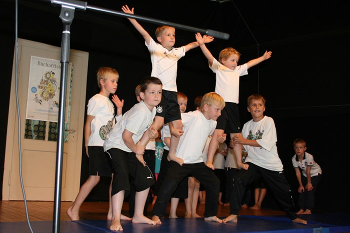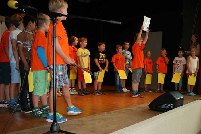 Auf der großen Bühne stellten sich die Zweitklässler vor. A wie Auto ... riefen sie, andere wiederum erzählten die Geschichte von Leo, dem Löwen und die Sportler zeigten Akrobatik der Spitzenklasse.