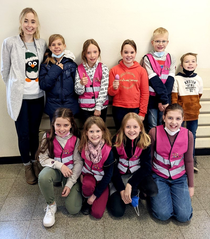 Als Erkennungszeichen tragen die ausgebildeten Jungen und Mädchen pinke Warnwesten, welche von unserem Förderverein gesponsort wurden.