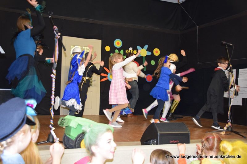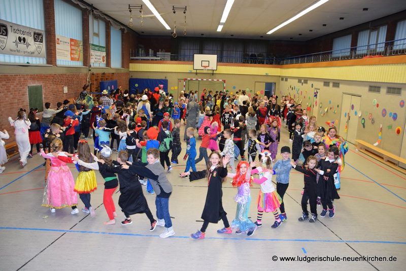 Auch in diesem Jahr wurde an unserer Schule wieder ausgelassen gefeiert. Alle Kinder, Lehrkräfte und Mitarbeiter kamen verkleidet zur Schule. In den Klassen wurde gespielt, getanzt und genascht. Nach der großen Pause auf dem Schulhof startete eine Polonaise durch die Schule. Diese endete in der Turnhalle, wo alle gespannt auf die Bühne schauten.